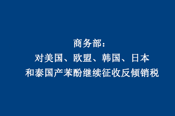 商務(wù)部:對美國、歐盟、韓國、日本和泰國產(chǎn)苯酚繼續(xù)征收反傾銷稅