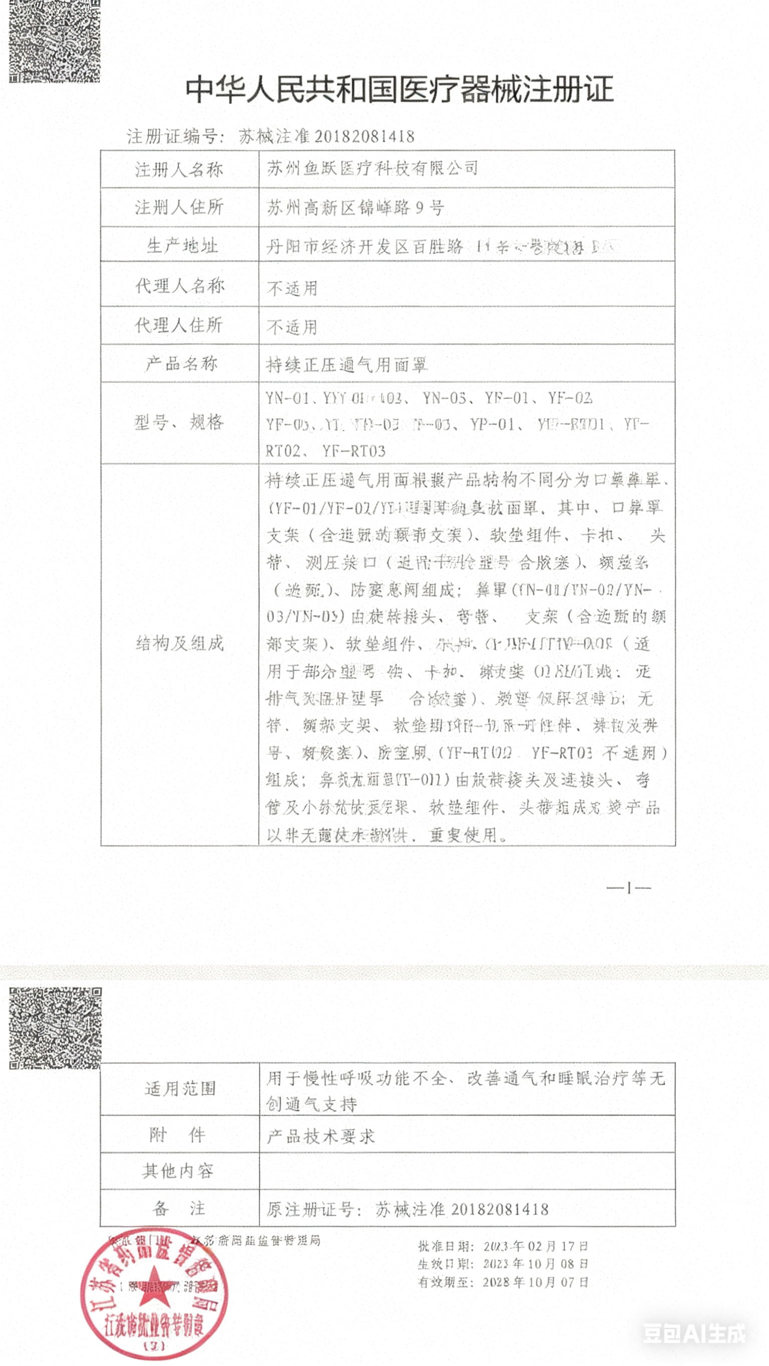 編號(hào):蘇械注準(zhǔn)20182081418